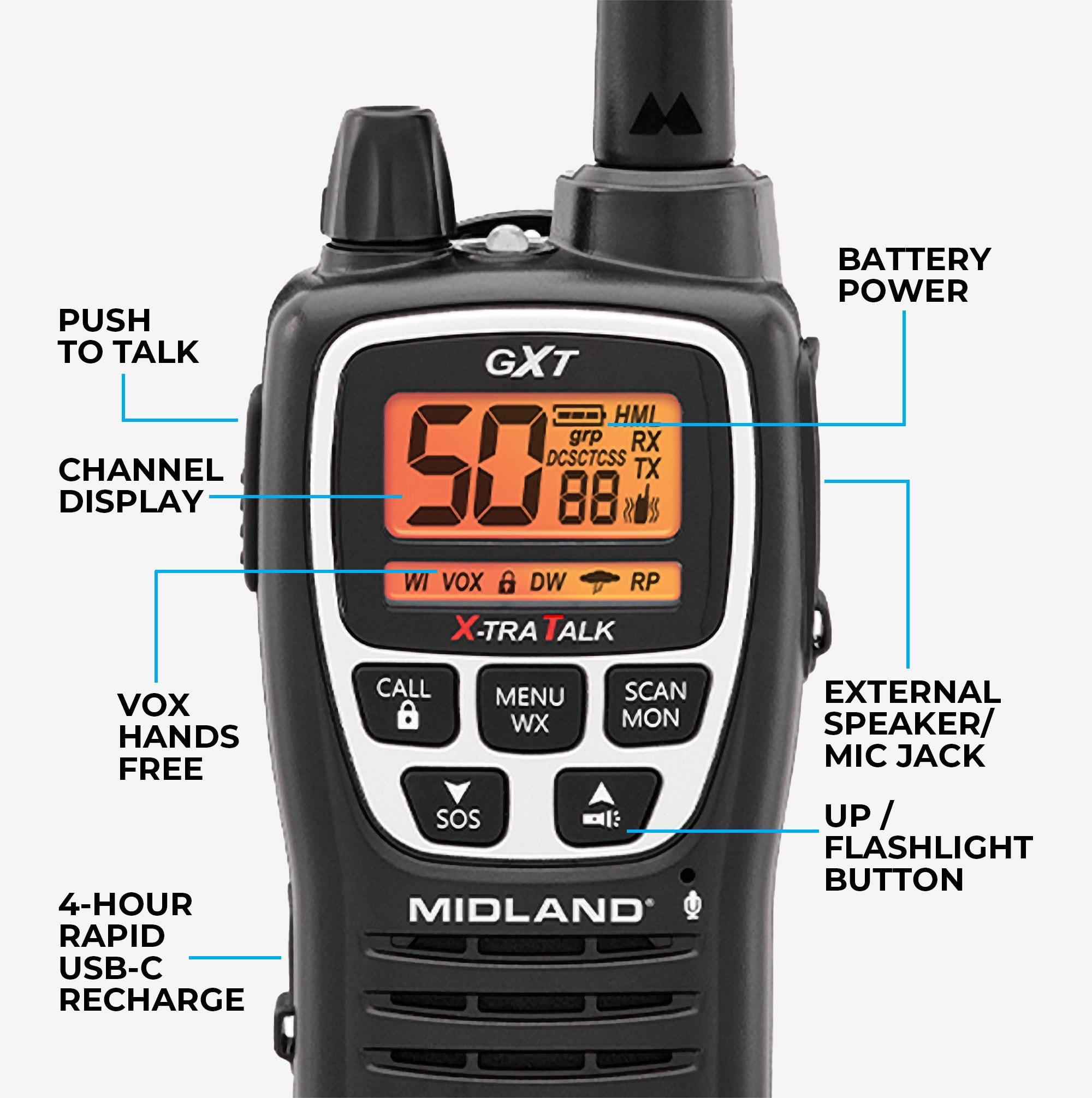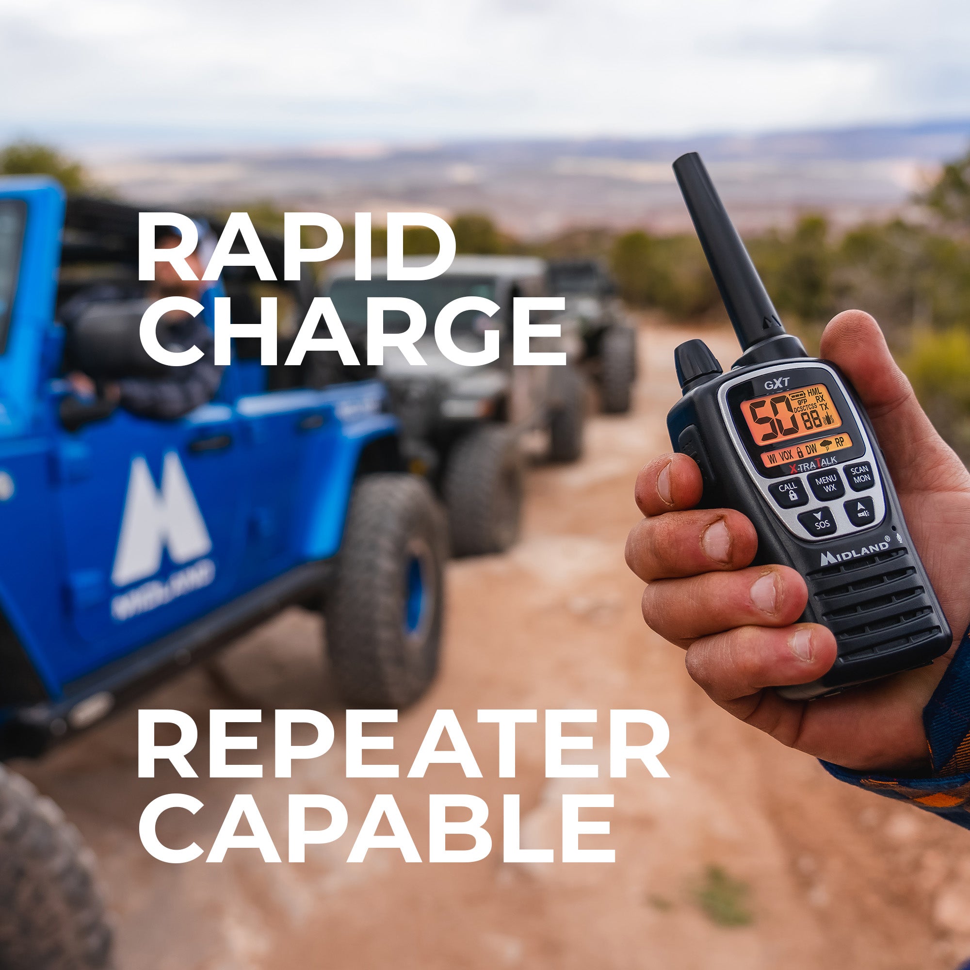 Midland’s new GXT3000 walkie talkies bring long-lasting battery life and repeater capability at a price that won’t break your bank, making it your go-to handheld radio on the farm, on the trail, or on the move.
