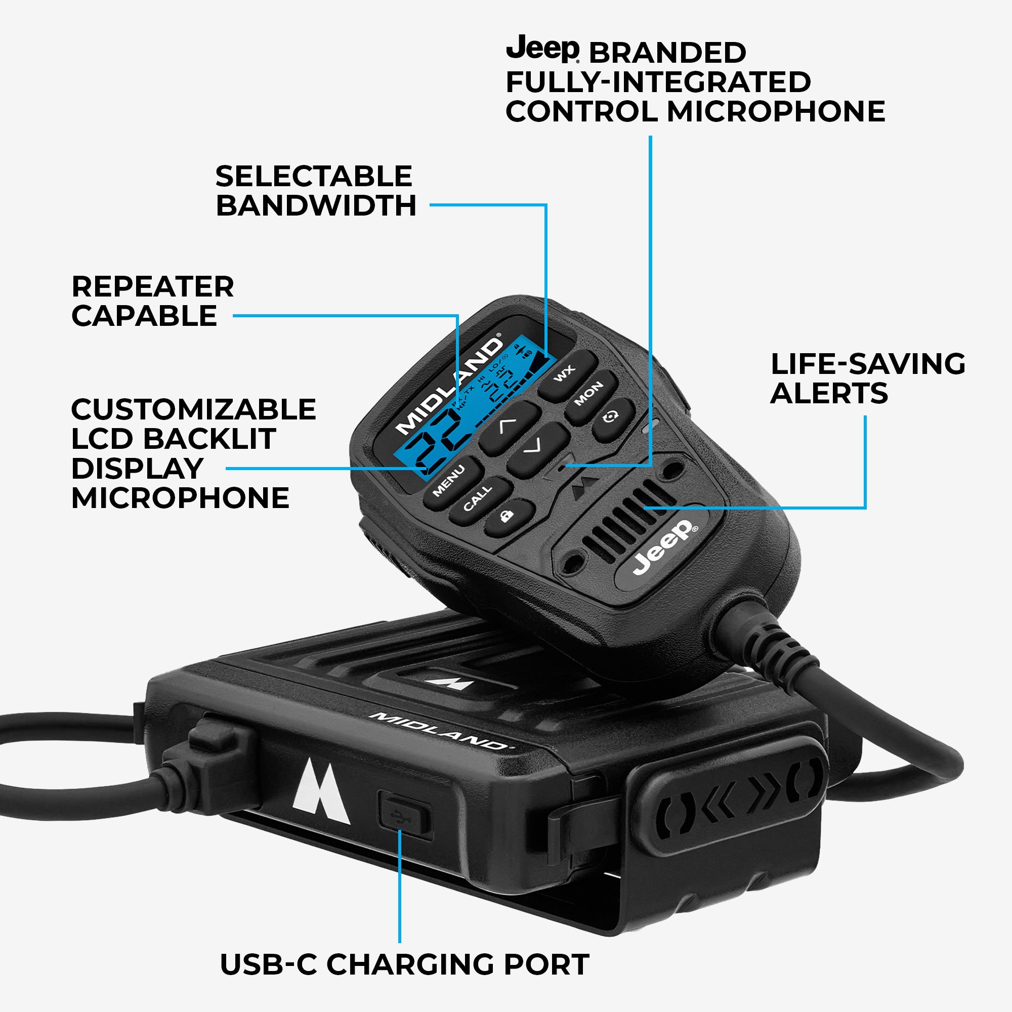 • JEEP® branded Fully-Integrated Control Mic: mount the base out of sight and save dashboard space