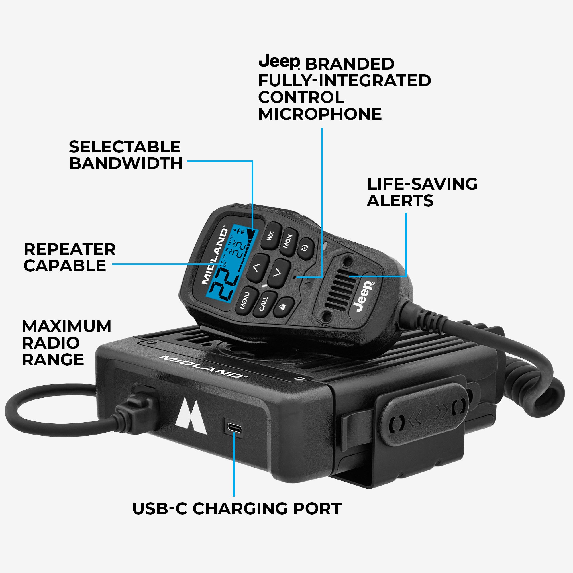- Jeep® Branded Fully Integrated Control Mic