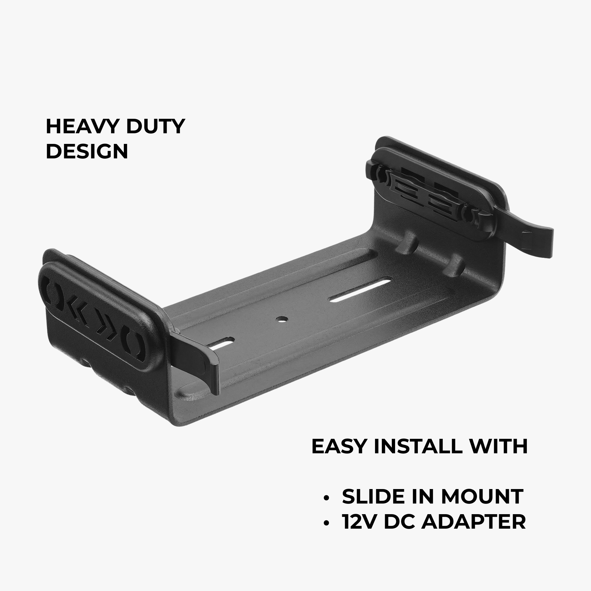 - Radio dimensions with bracket: 4 13/16" x 5 1/16" x 1 7/16" (D x W x H)