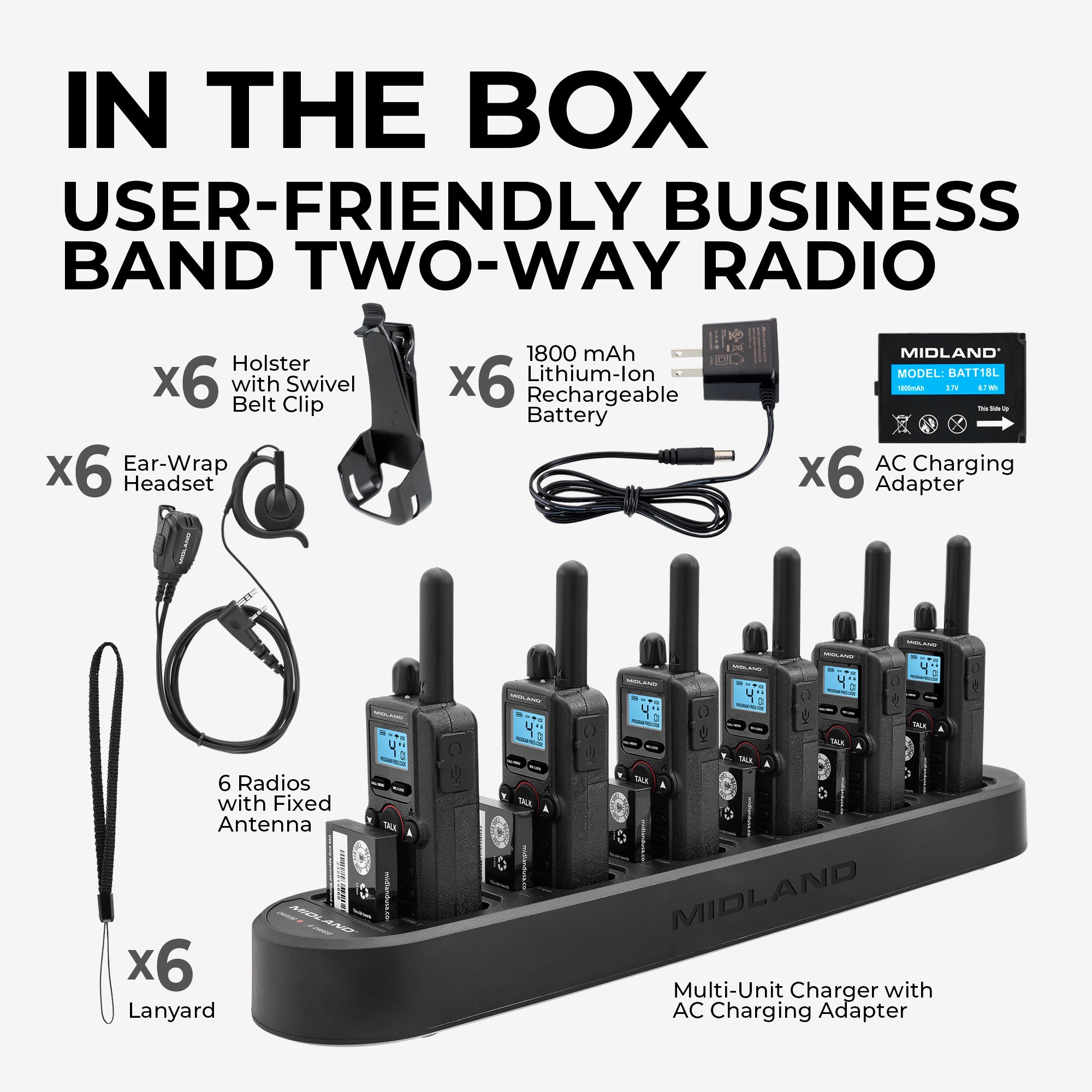 Midland’s BR180 is small and lightweight, bringing clean and clear communication to businesses like restaurants and specialty retail stores, improving efficiency across the board. It’s all-day battery life handles the job and this bundle gives businesses a place to store and charge their radios before the next shift begins.
