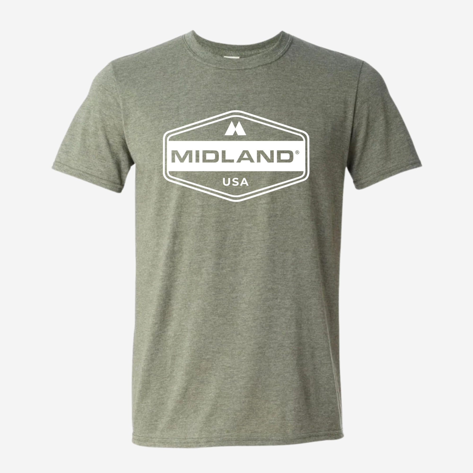 The Midland Radio T-Shirt comes in Black, Dark Gray, Heather Blue, Heather Green, Light Gray and Heather Navy Blue. Soft-style tee with bold Midland logo