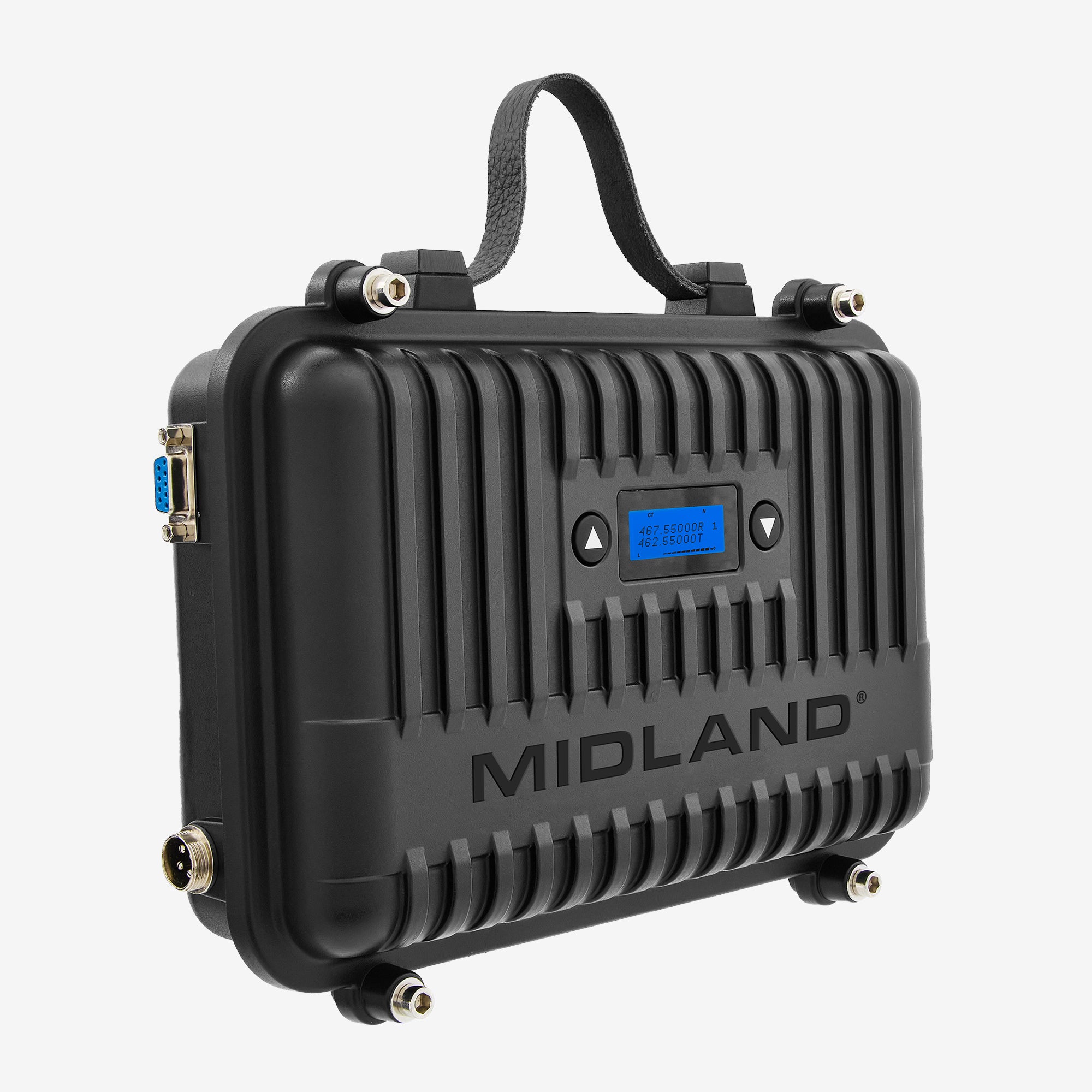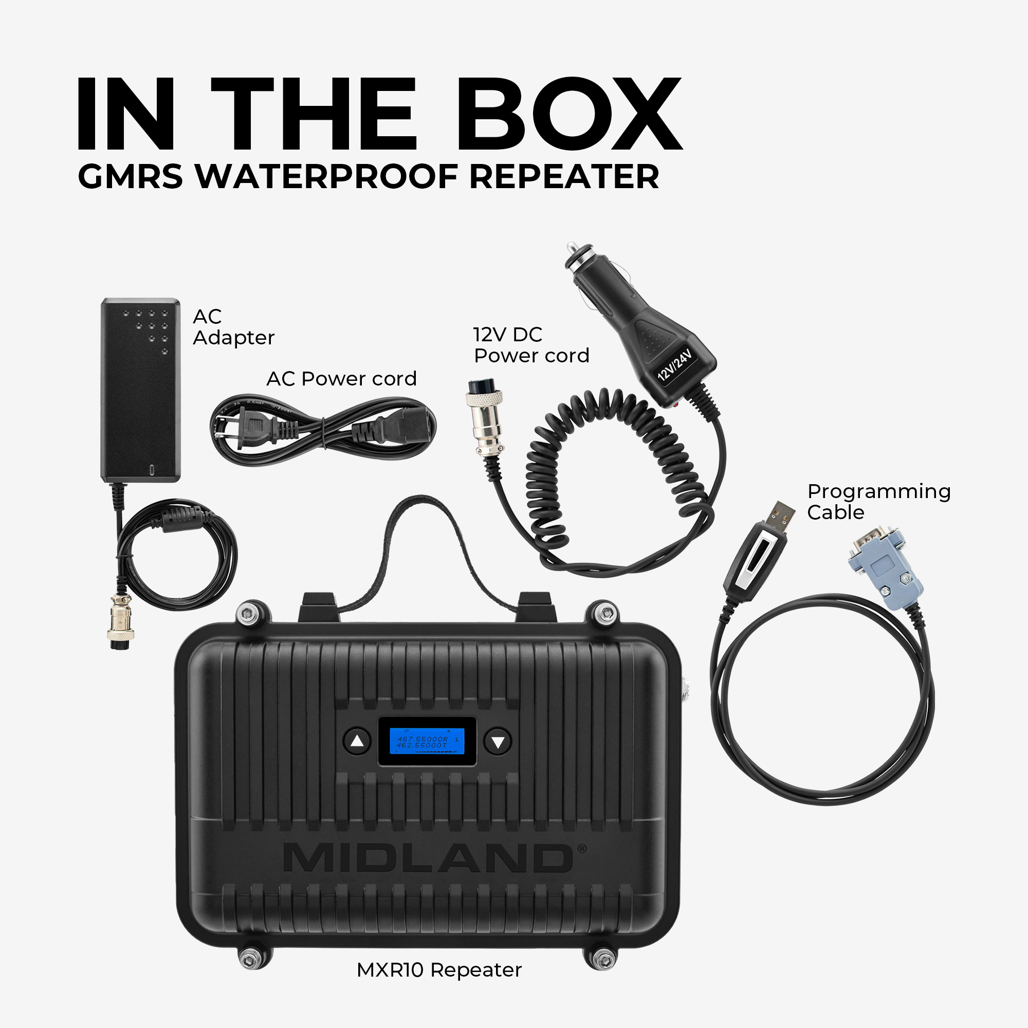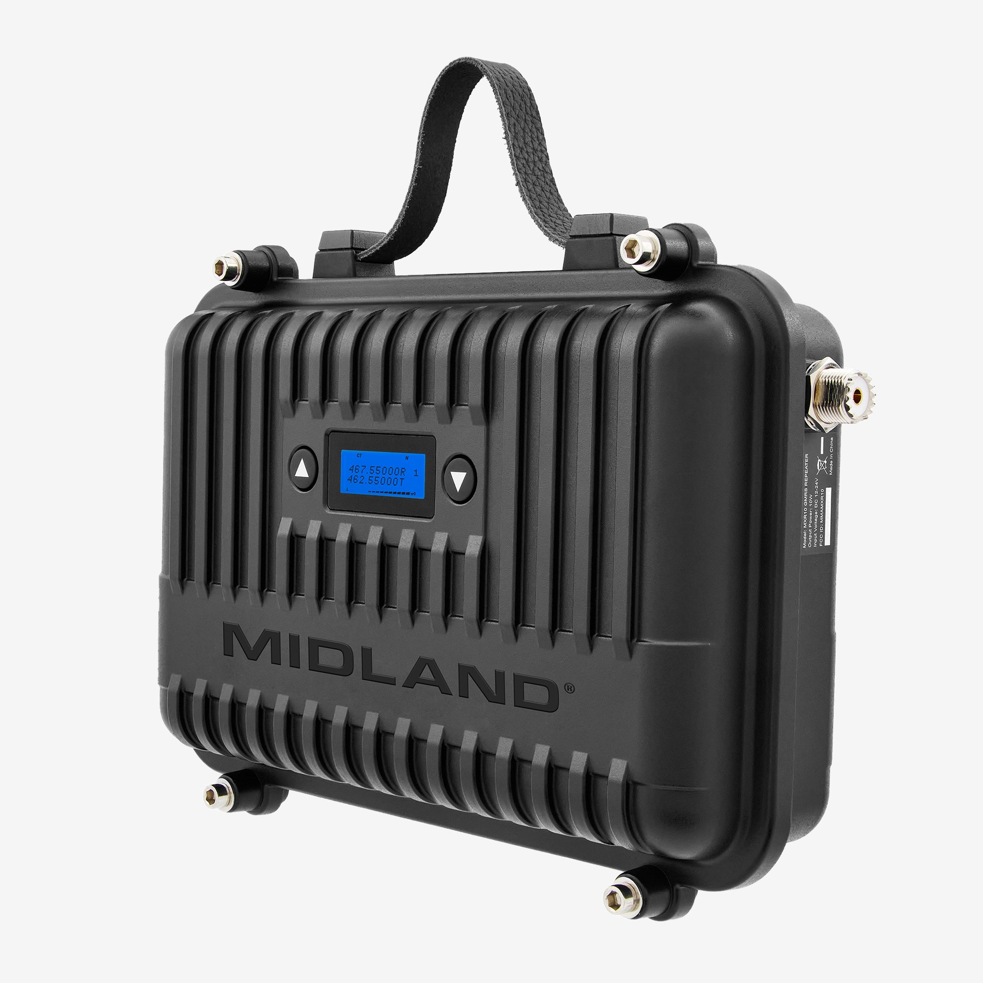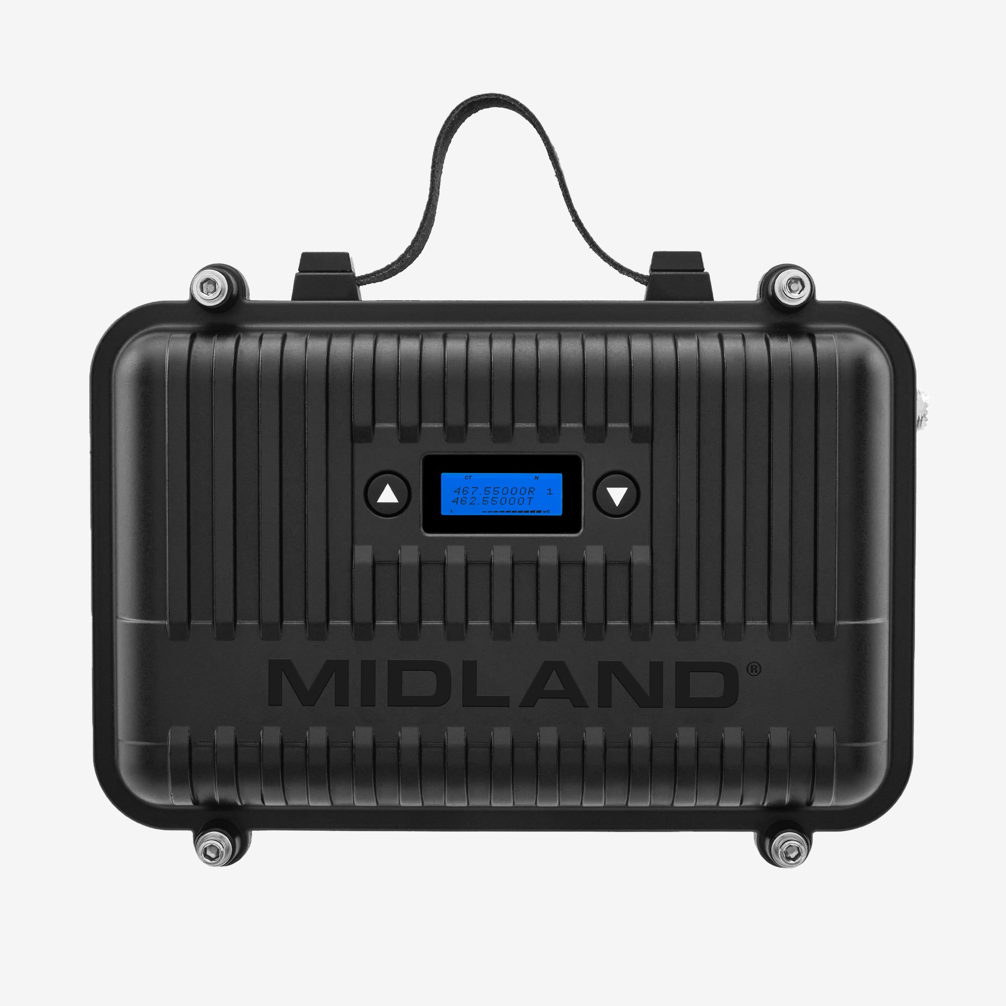 Midland’s MXR10 GMRS Repeater extends GMRS two-way radio range to new lengths in the toughest of environments with its new IP67 waterproof rating and pre-configured channels for a powerful, easy set up.
