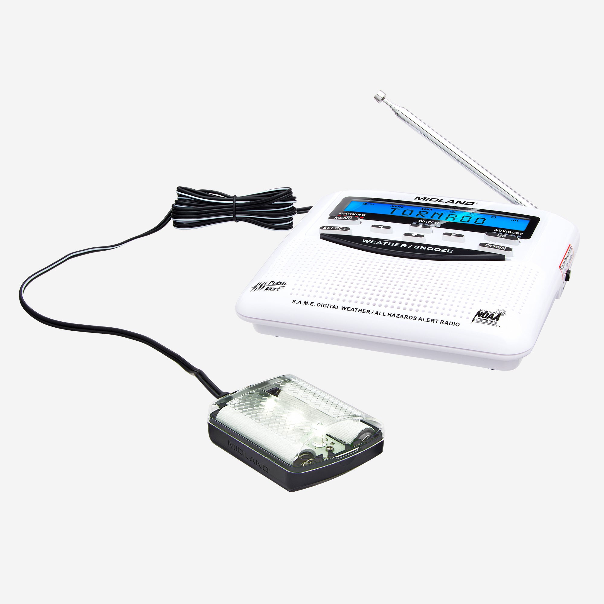 Midland's strobe light plugs into the back of weather and emergency alert radios to ensure those with hearing impairments are alerted when severe weather and emergencies occur in their area.